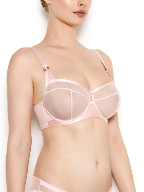 Retro glamour is reimagined in the enduringly elegant Abbie collection. Crafted from the finest French lace, this vintage rose balconette bra boasts a pretty eyelash trim and silk button detail. Bespoke underwires and an invisible tulle lining in the cups create superior support, lift and shaping.