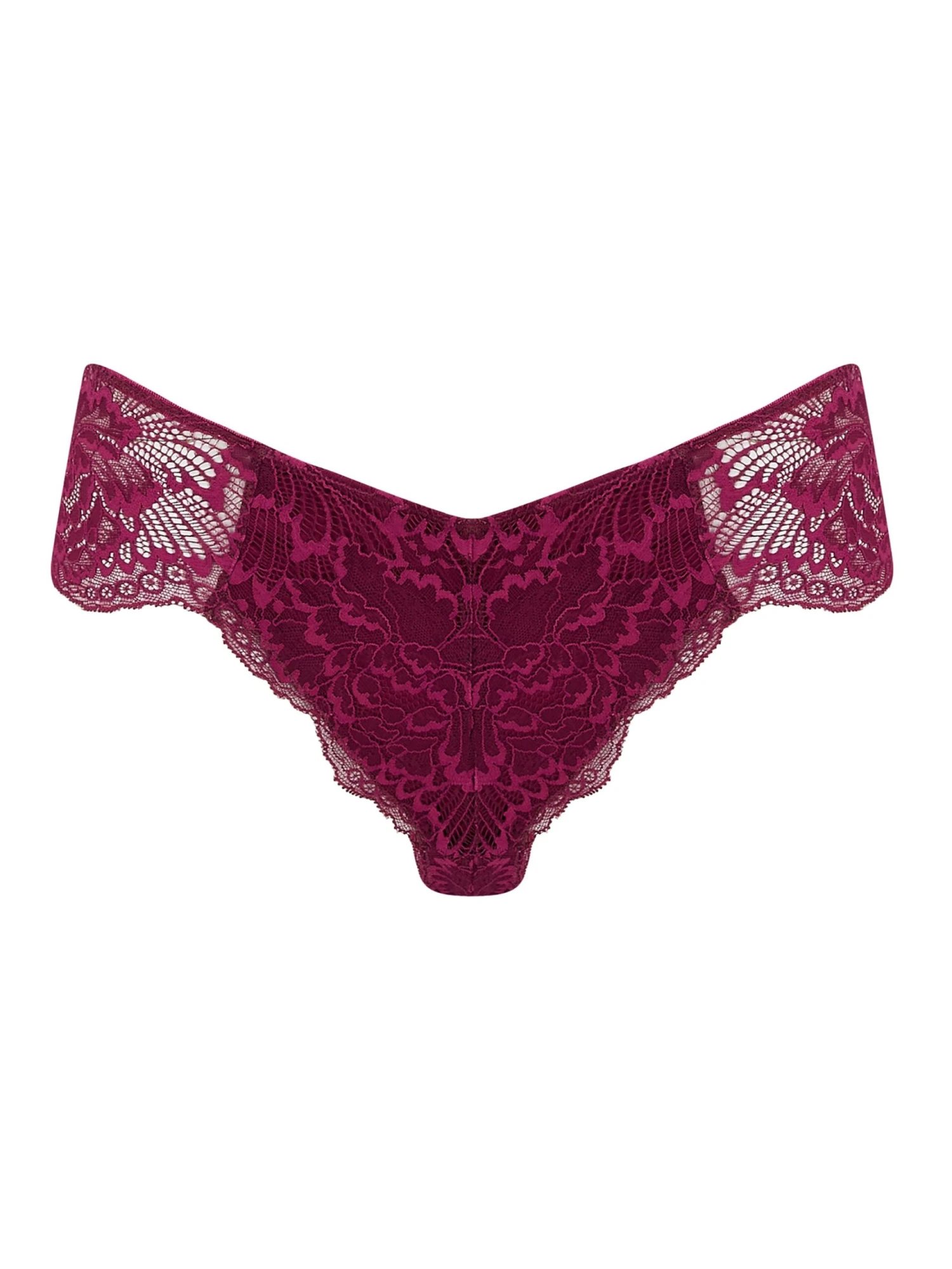 With soft stretch lace covering the whole design, our Angela boysenberry knickers are as pretty at the front as they are at the back. An elastic-free front waistband and edging provide superior comfort and a flawless finish under clothing.
