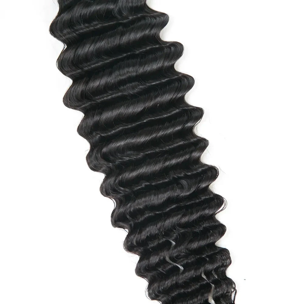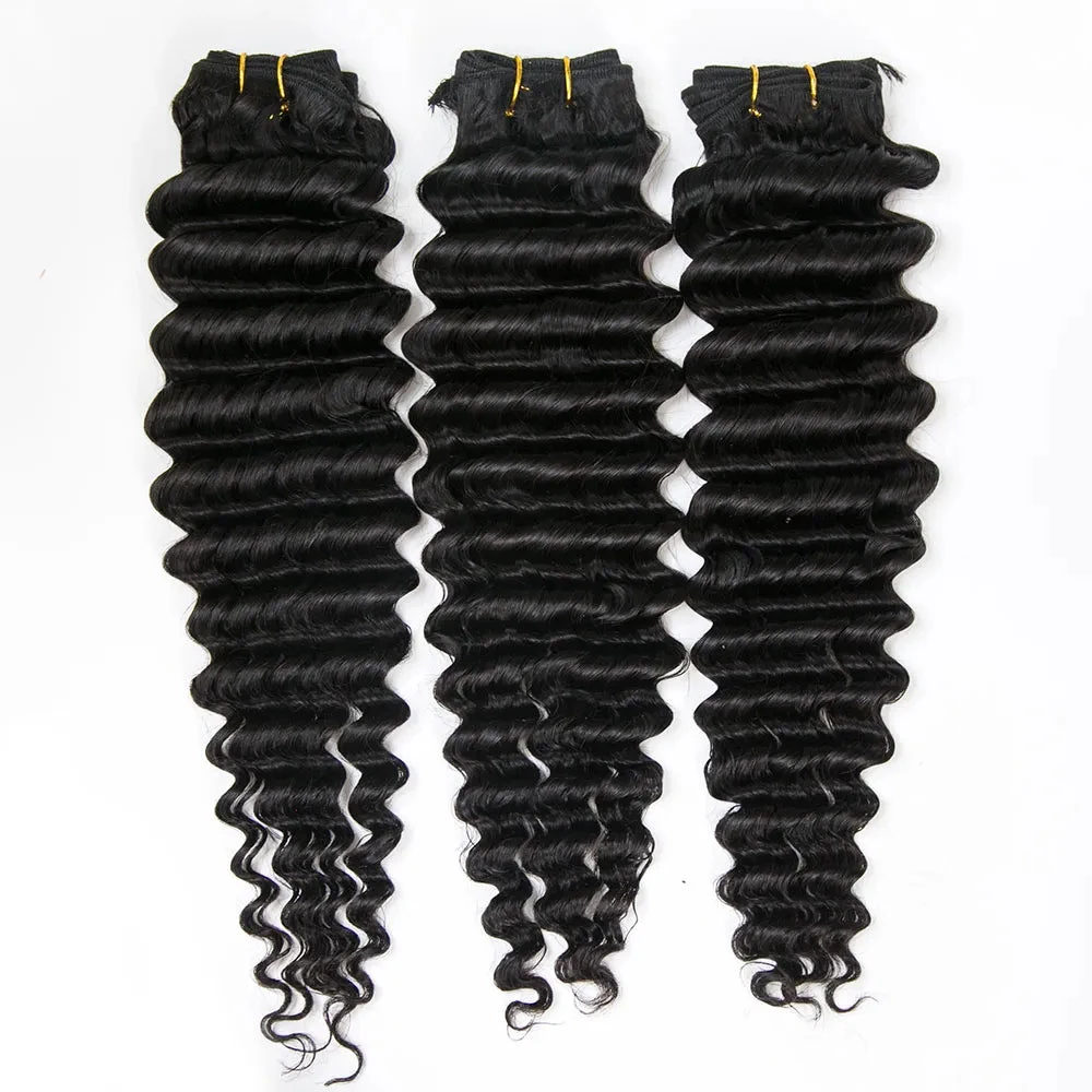 Buy Deep Wave Human Hair Bundles in Natural Color for a stunning, voluminous look. These high-quality hair extensions are perfect for adding length and fullness to your natural hair. Ideal for any occasion, our Deep Wave Human Hair Bundles come in a beautiful natural color that seamlessly blends with your hair for a flawless finish.