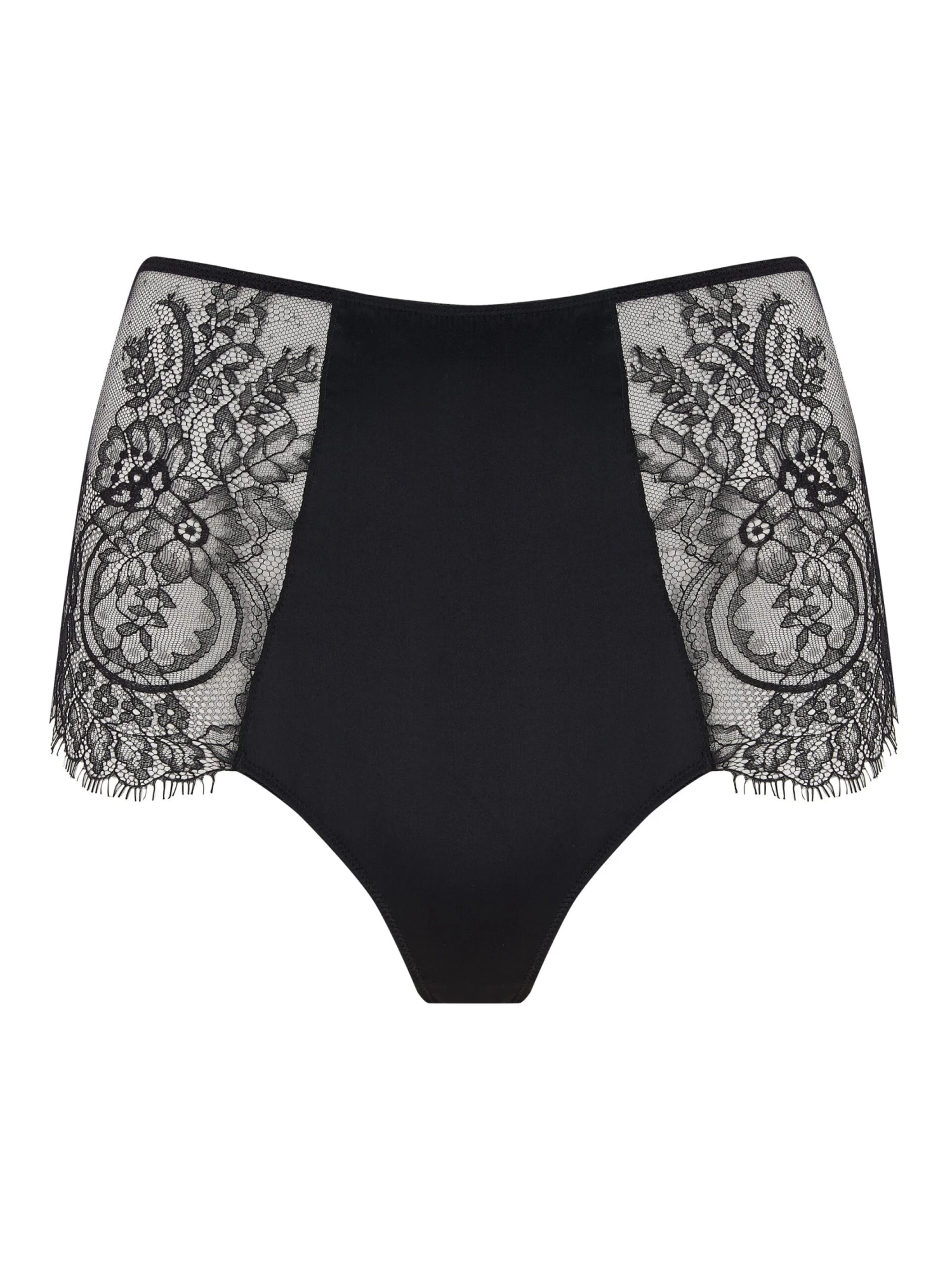 A pure silk centre panel sits beautifully between two elegant pieces of black Leavers lace, each trimmed with intricate eyelash detailing. A full coverage mesh back minimises the appearance of lines under clothing to enhance a smooth and flattering silhouette
