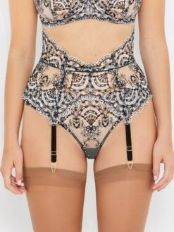 Abrielle Gold Embroidered Suspender Belt