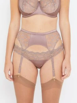 Sophia Café Lace High Waist Suspender Belt