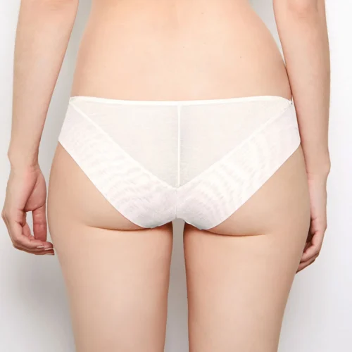 A sumptuous silk panel sits between intricate ivory French lace borders while silk continues on the waistband, straps and trims.