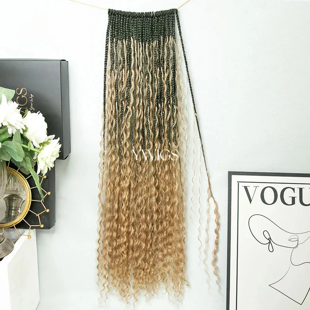 - Synthetic Braids in color #1B and human hair curls in natural color